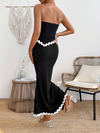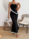 Set A Due Pezzi In Block Dei Colori Per Donna, Composto Da Top Senza Spalline E Gonna A Sirena