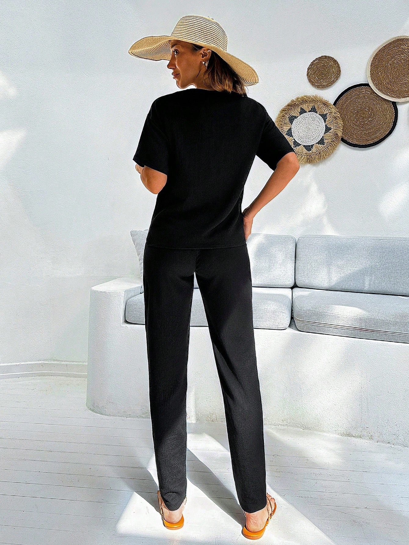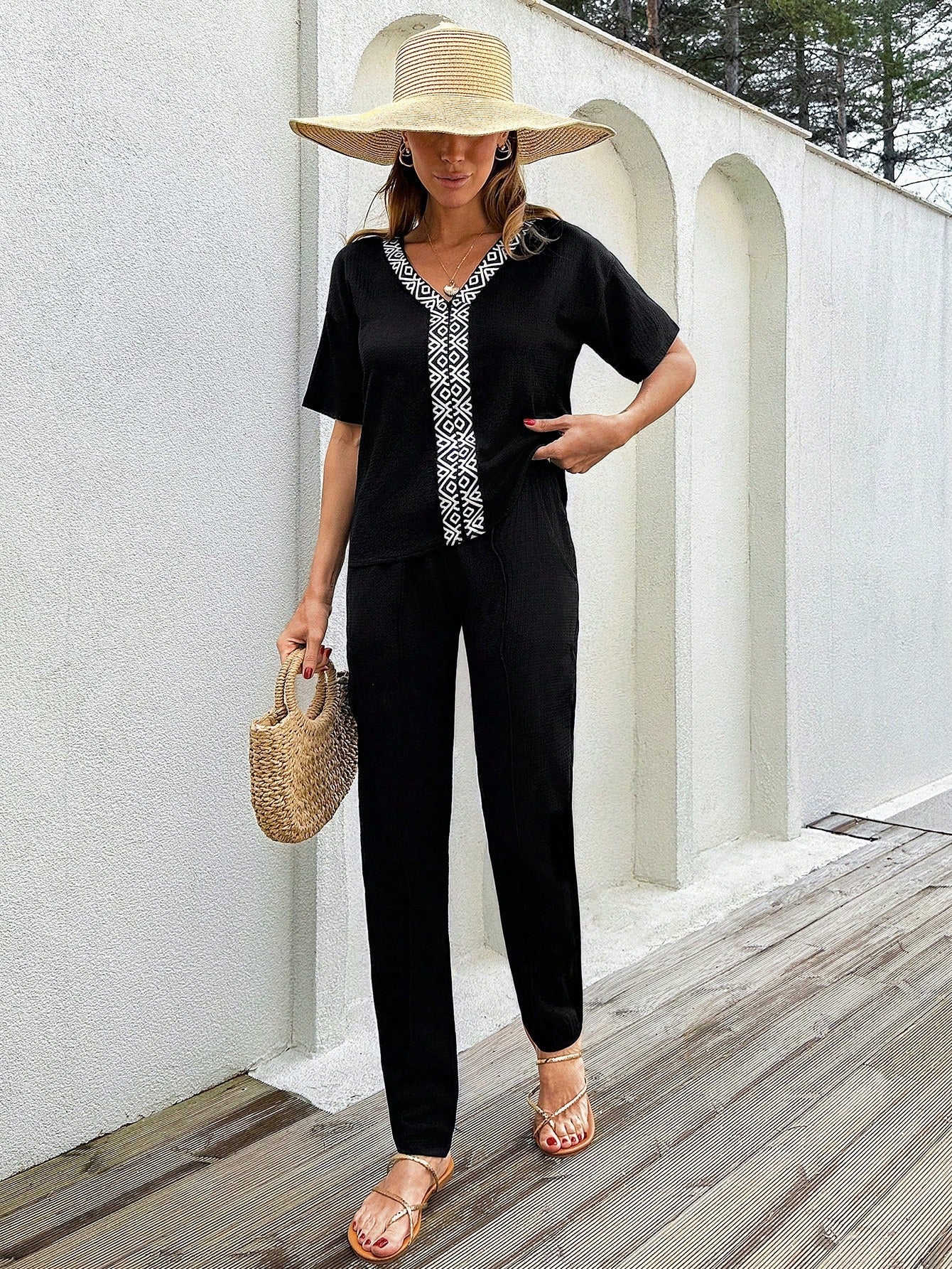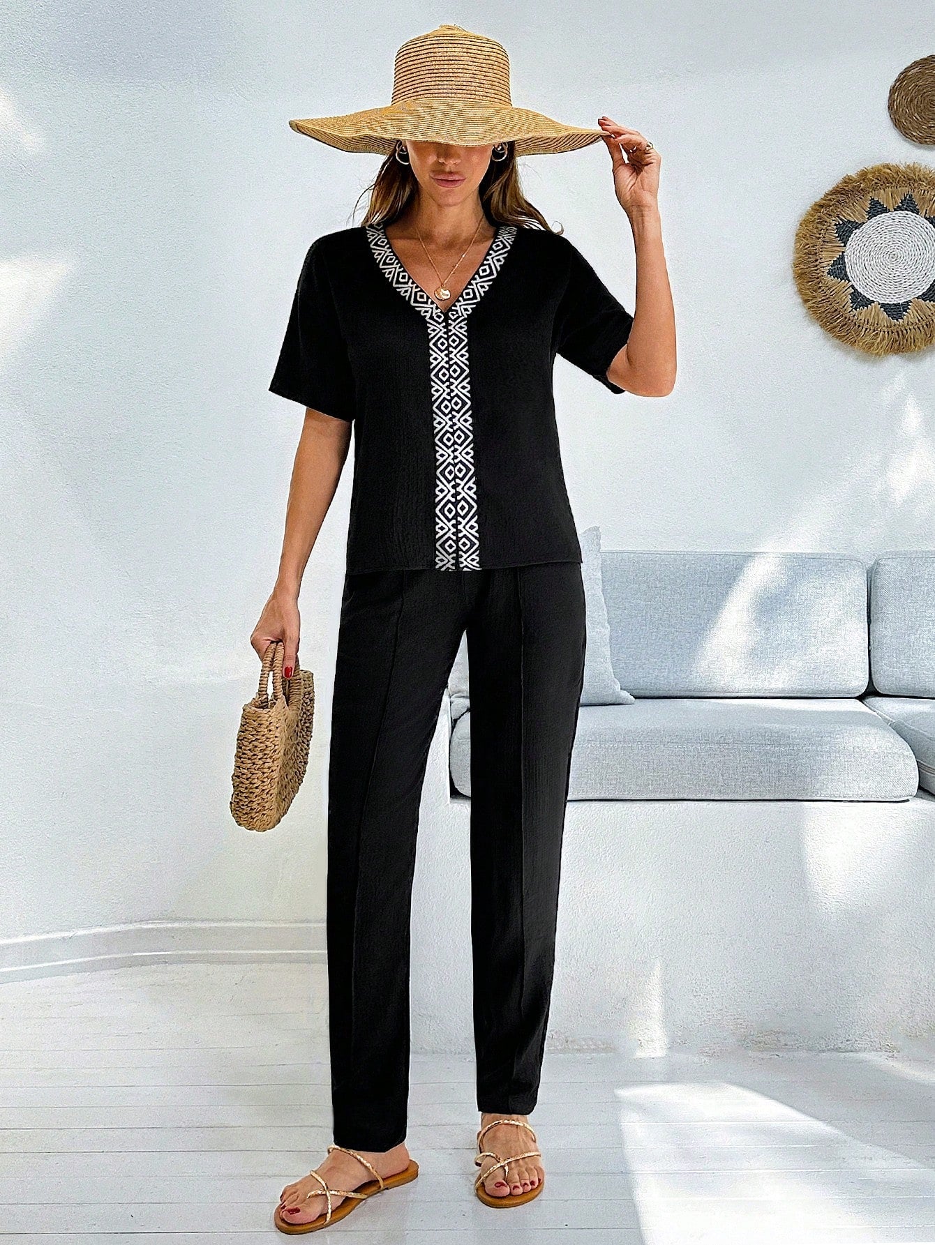Set di top a maniche corte e pantaloncini casual con patchwork