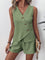 Set Due Pezzi Top Canotta Smanicato Con Collo A V Decorato Da Bottoni E Pantaloncini A Vita Alta Tinta Unita Per Donna