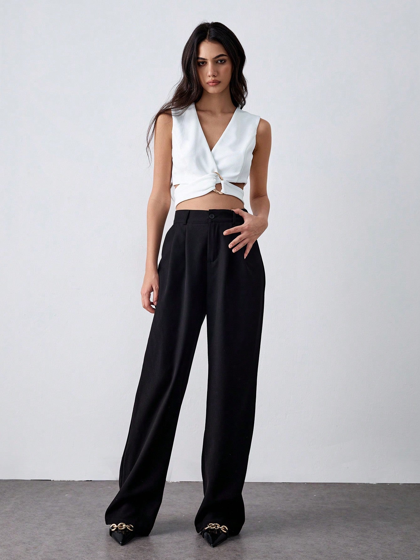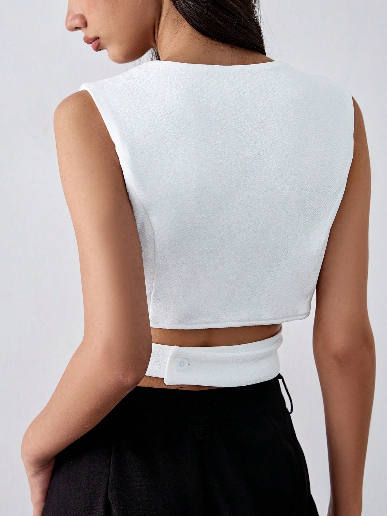 Top asimmetrico da donna con nodo e laccio anteriore, decorazione metallica