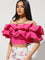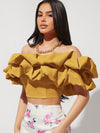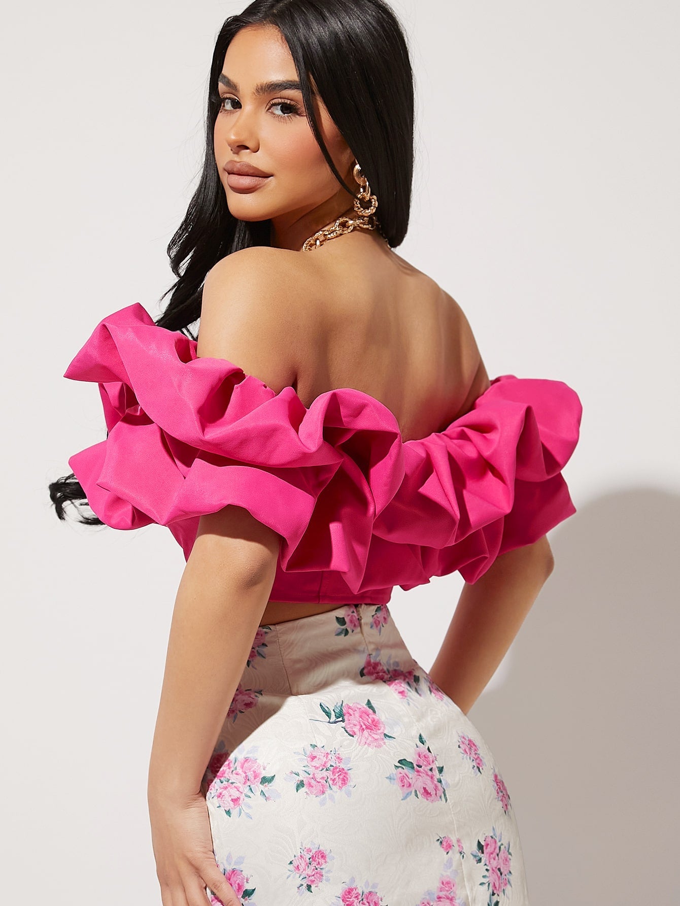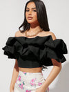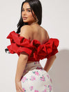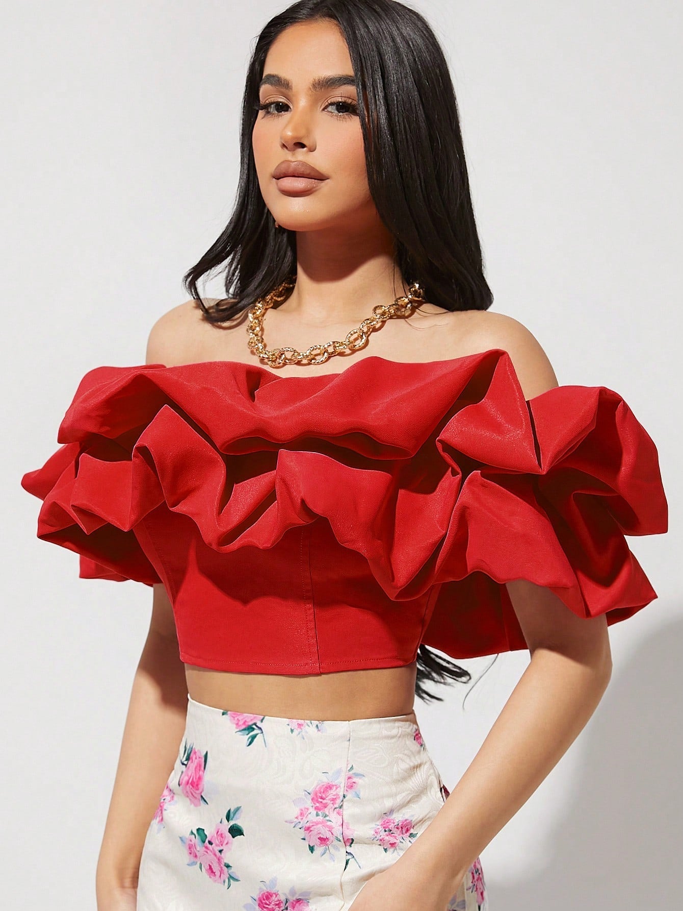 Top Con Orlo A Volant Esagerato In Tinta Unita Con Spalle Scoperte
