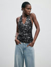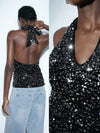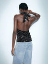 Top elegante e da cittˆ alla moda nero con paillettes scintillanti