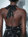 Dettaglio : Schiena scoperta, Orlo di paillettes, Nodo