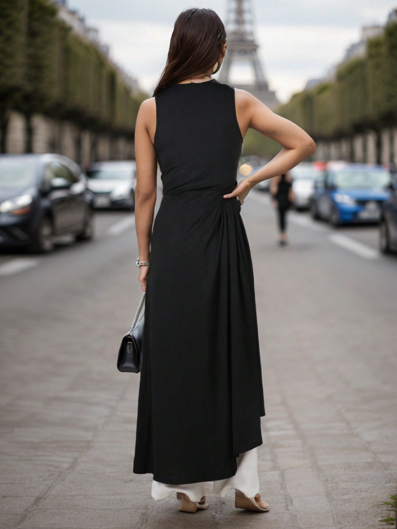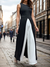 Top Senza Maniche Monocromatico Da Donna Con Orlo Diviso E Pantaloni Abbinati