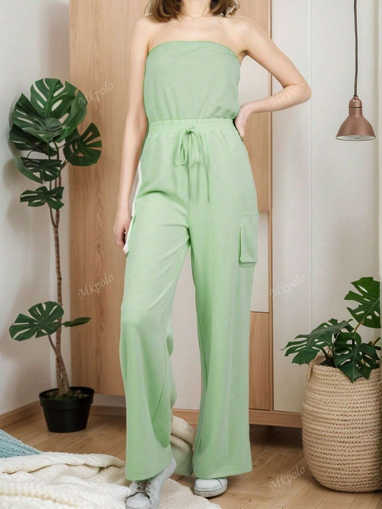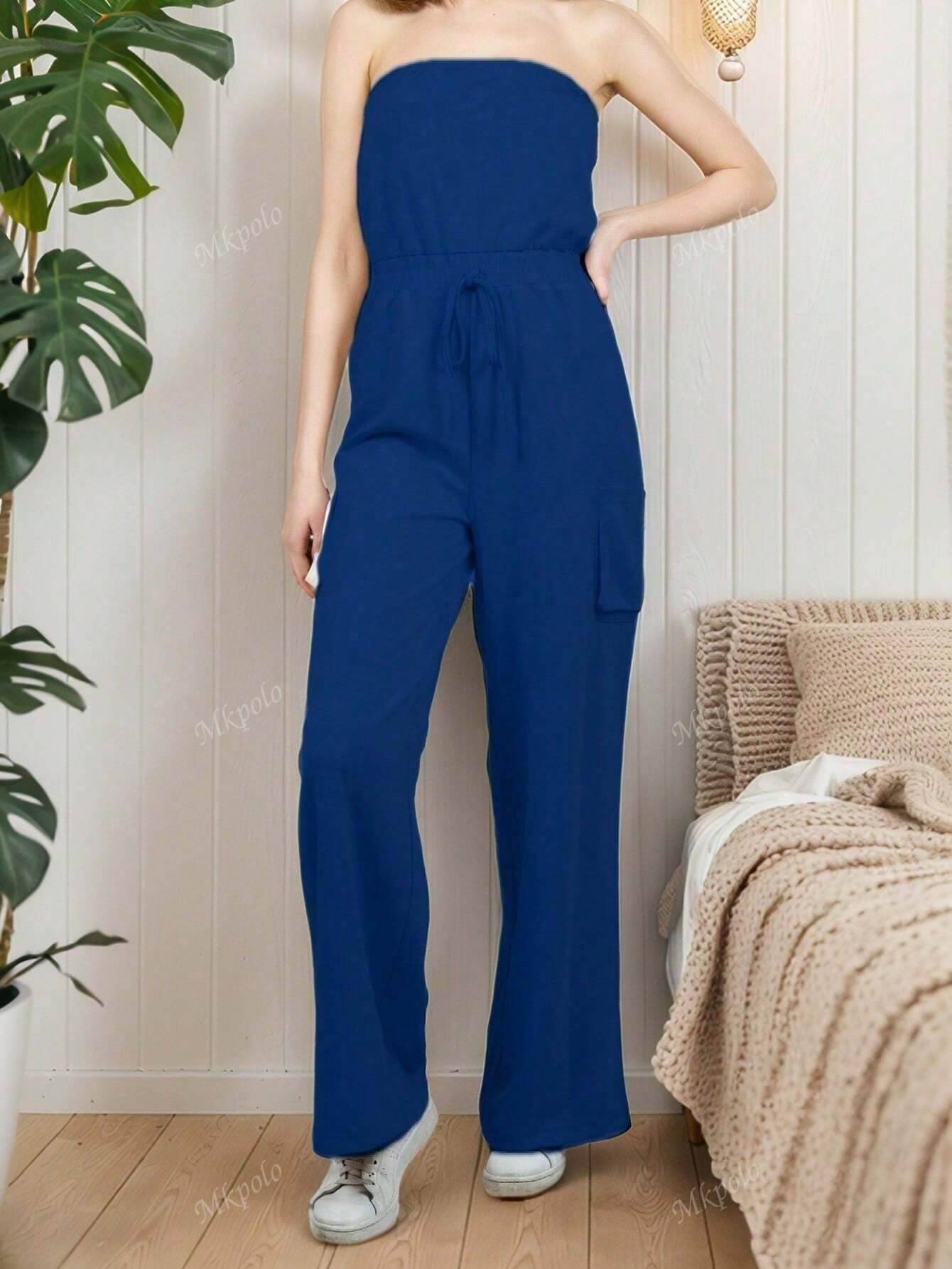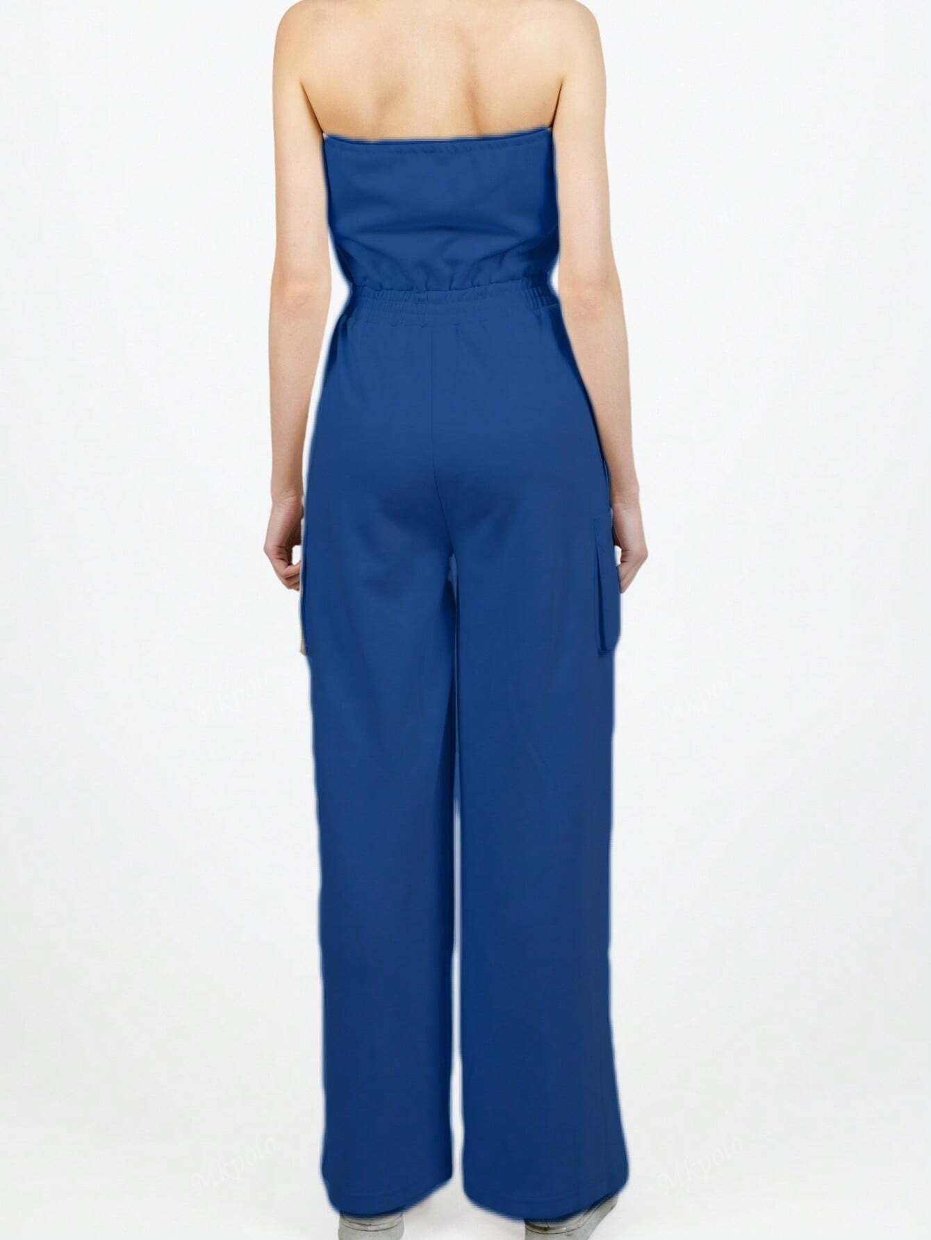 Tuta da donna, tuta a fascia, design con coulisse, design con tasche sulle cosce, design monocolore