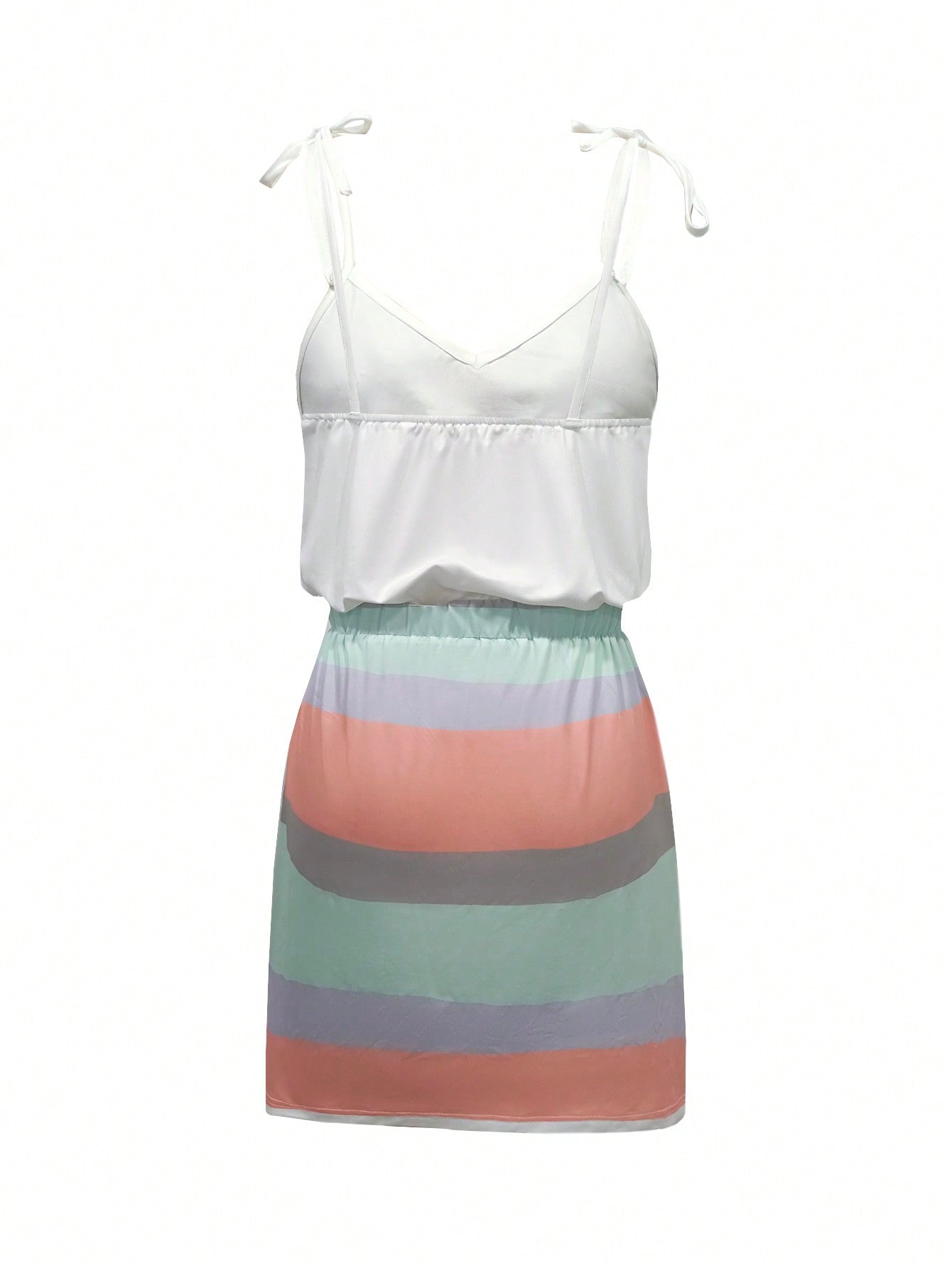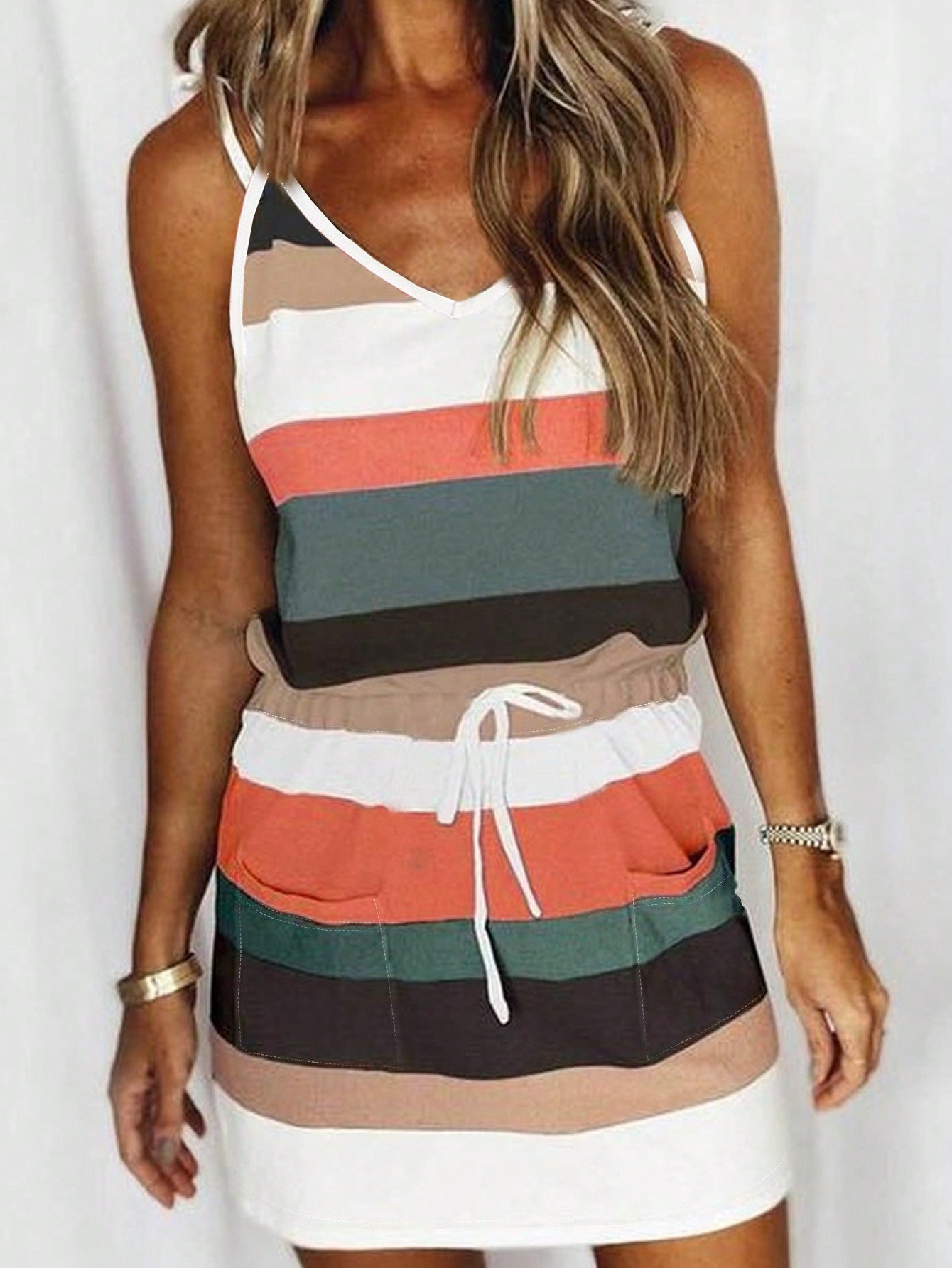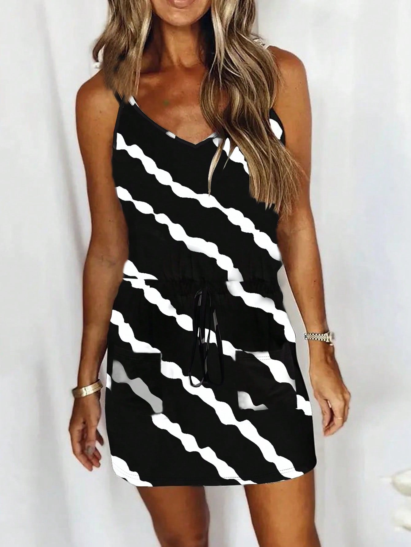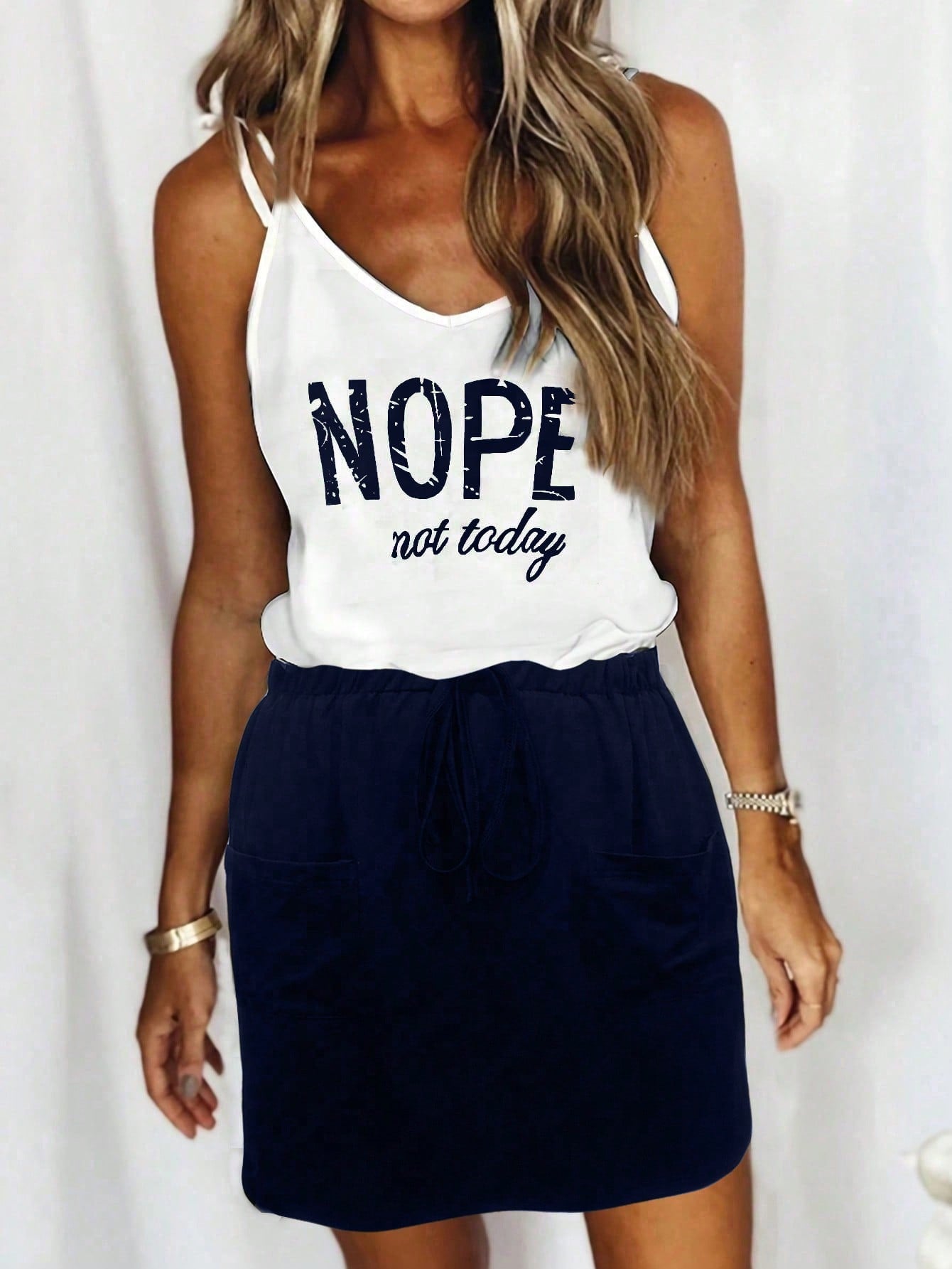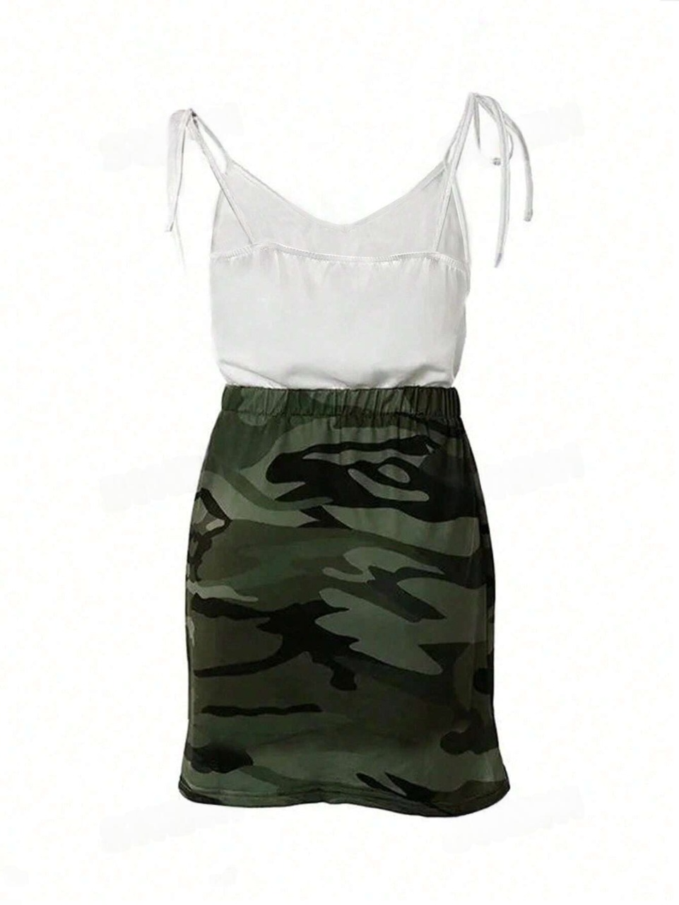 Colore : MulticoloreStile : CasualTipo di motivo : Lettere, MilitareTipo : CamiDettaglio : Coulisse, LacciScollatura : Spalline sottiliLunghezza manica : Senza manicheTipo di montaggio : Forma SottileLunghezza : MiniLinea vita...