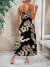 Vestito A Spaghetti Con Slipt Hem A Croce E Collo A V Stampato A Piante Per Le Vacanze